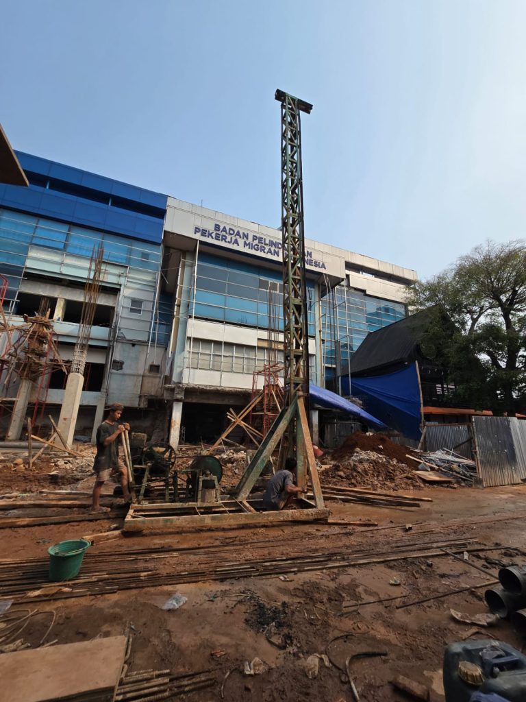Setiap lubang bor dibuat dengan ketelitian tinggi agar pondasi benar-benar lurus dan stabil.